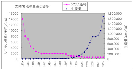 1979-2009年の学習曲線による分析を行うと、累積生産量が2倍になるときコストが82%に低下している。2000年を越えてこの傾向はやや緩やかになっているが、さらにコスト低下の可能性があり、将来的には既存電力と競合すると思われる。